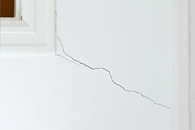 - Corner cracks or seams around doors due to movement